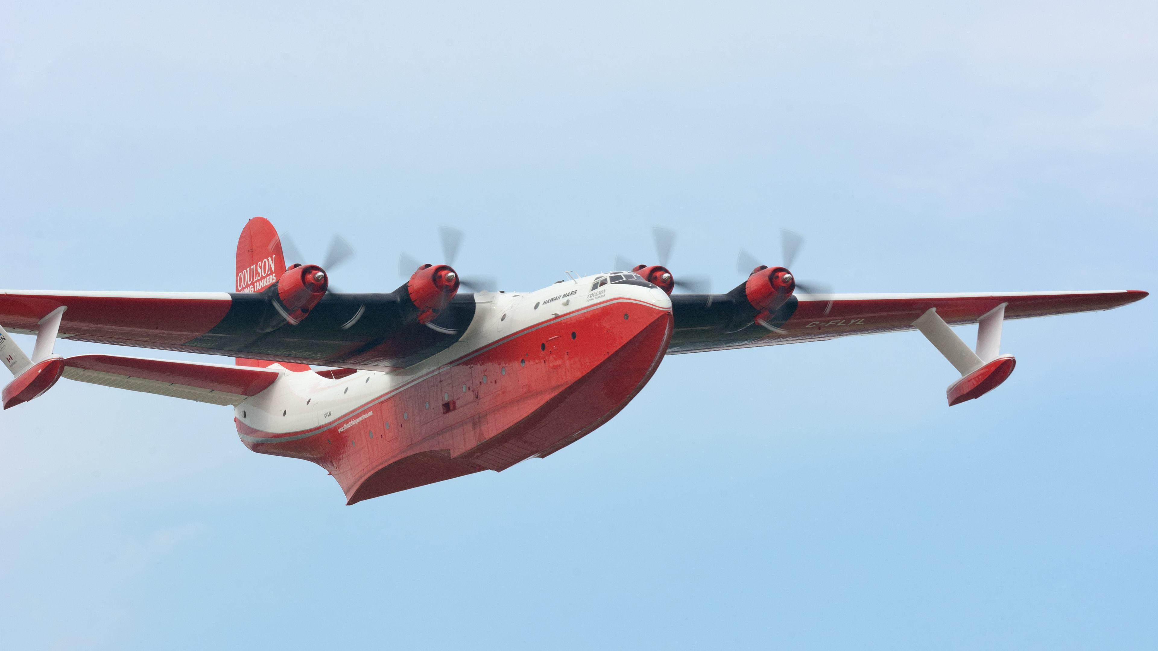 Coulson’s company has been training Chinese test pilots in Canada, helping prepare them to fly the new TA-600 amphibious aircraft now being built in China by the Aviation Industry Corp. of China. The pilots from China are training in Coulson’s Hawaii Mars aircraft, taxiing and flying the large flying boat in preparation for flying the new Chinese design, which will have a 3,000-gallon water capacity and is powered by four turboprop engines.