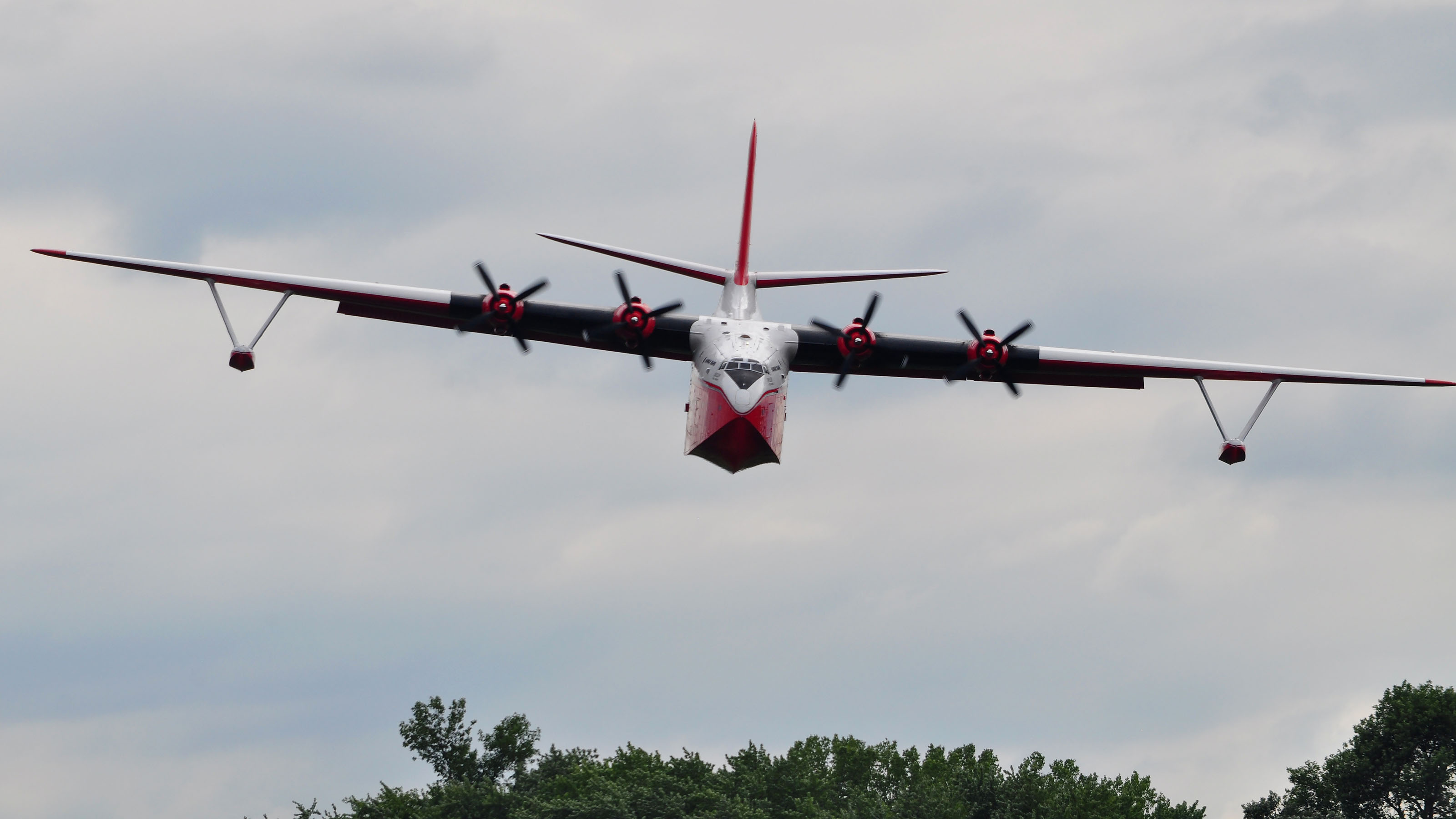 The aircraft flew nonstop from Port Alberni to Oshkosh. The trip took nine hours, including a diversion around some weather. It burns about 420 gph in cruise flight, but that increases to 780 gph at maximum power—often the case during firefighting missions.