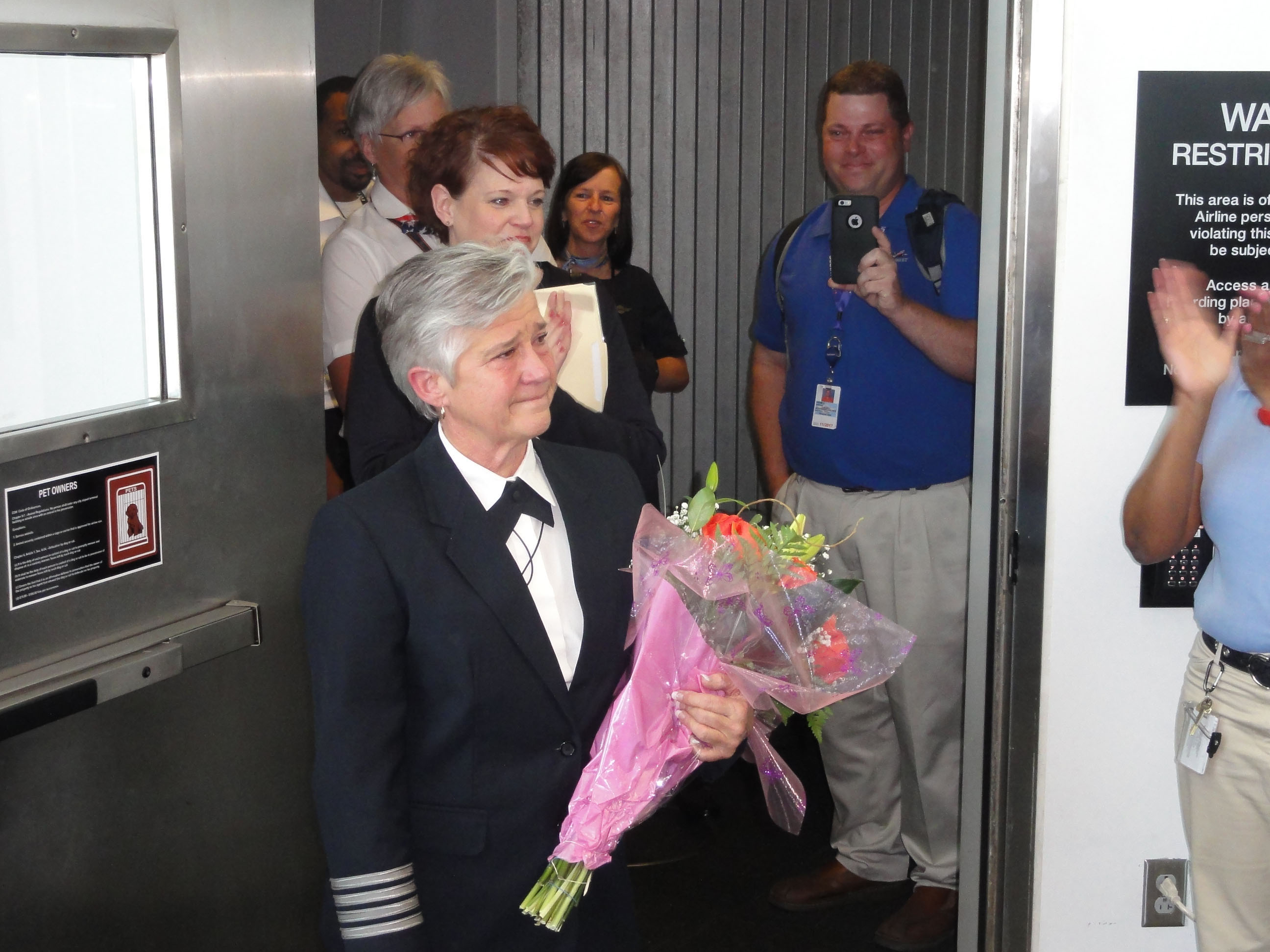 “So many people come up to her and share they were grateful for her doing this or that. It always impresses me,” said Hasselbring, who flew aboard Rihn-Harvey’s final flight as captain.