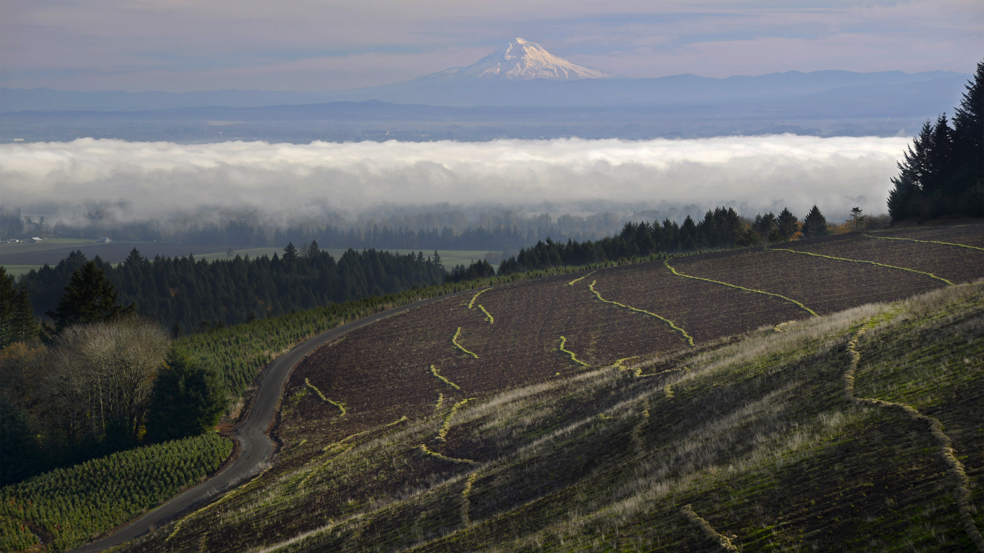 On a rare sunny day with snow-covered Mount St. Helens, Mount Adams, Mount Hood, and Mount Jefferson angling skyward from the distance, Schaefer stopped to pick up an errant tree that fell from a truck and noted that Noble Mountain’s terrain harnesses some of Oregon’s steepest land for Christmas tree farming. “Sometimes you’re holding onto it for dear life, but it grows a wonderful tree, a fantastic tree. It’s fun to think about how many thousands of families we touch” for the holidays.