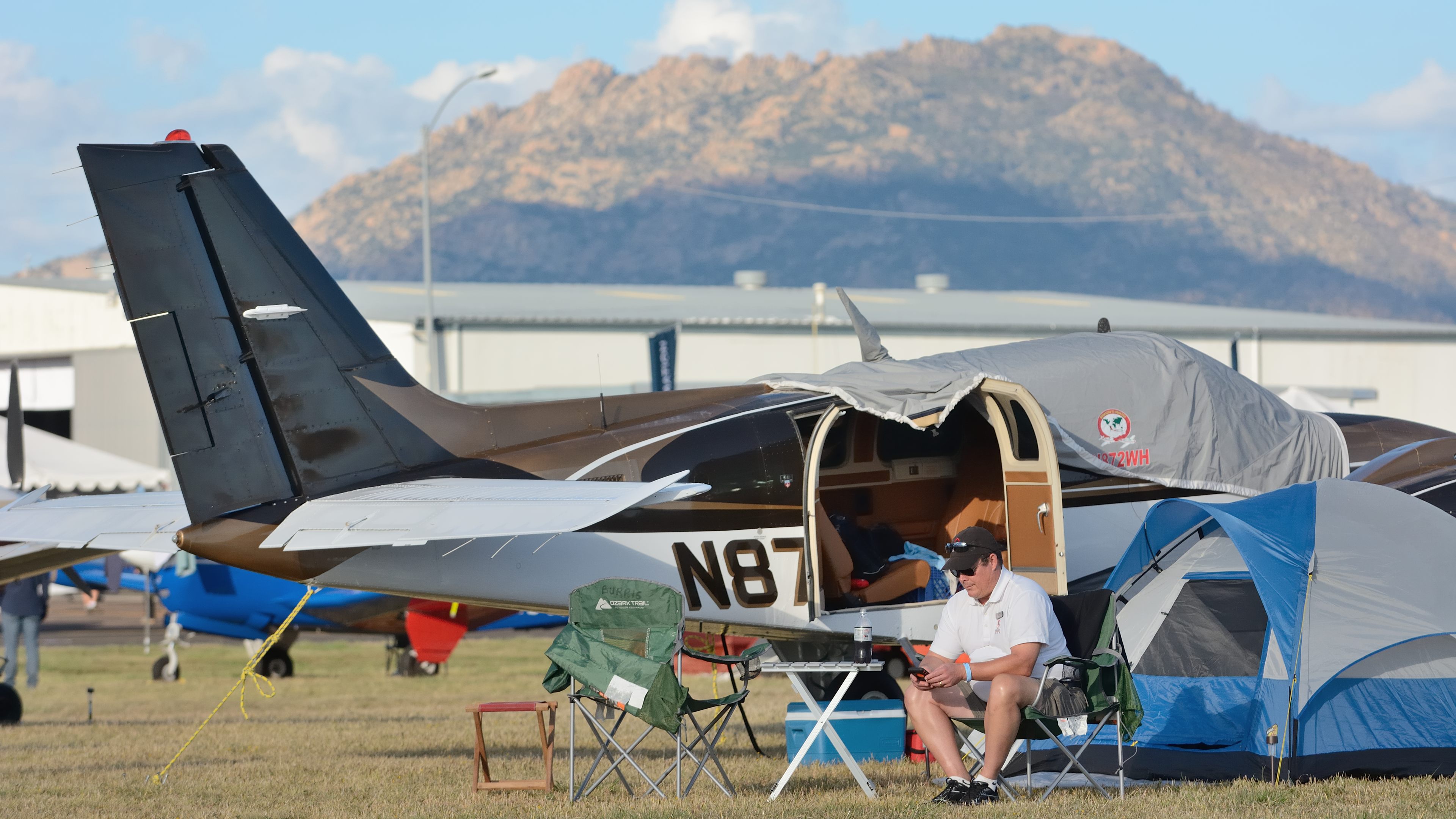 Nearby, Jay Burris of Houston, Texas, pitched a tent beside his Beech Baron 58—also for the first time. “We’re just having a great time and enjoying the weather,” he said. “It’s a gorgeous place.”