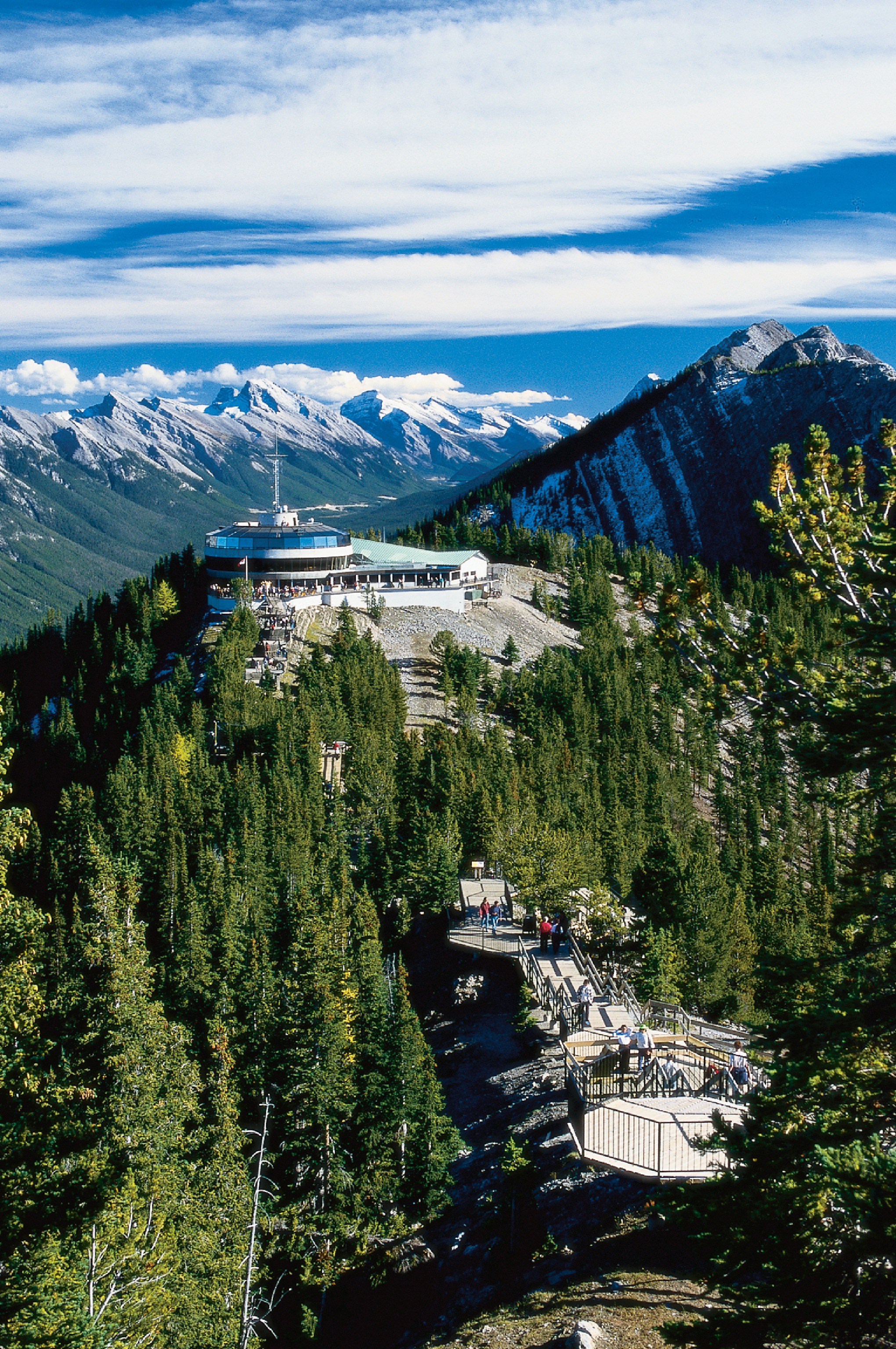 We stayed at the equally fabulous Rimrock Resort Hotel, perched above it all beside the Banff Upper Hot Springs and gondola. The Rimrock, deservedly an AAA/CAA 4-Diamond Hotel, features rooms and a lobby decorated with rich woods and furnishings, large windows, and a luxurious spa. A high corner room like the spacious Grandview Room 800 boasts views of both the Bow and Spray valleys. The next morning we followed the concierge’s directions to a hike up Ha Ling Peak to carefully crawl the last few feet and hang our heads over the cornice, with thousands of feet of air between our faces and the forest below. If you’d rather not climb a mountain, ride the gondola to the top of Sulphur Mountain, reminiscent of the Mt. Pilatus gondola above Lucerne in Switzerland. Enjoy the view at the restaurant or take the easy 1-kilometer self-guided tour of the Banff Skywalk; hikers here will find access to trails where wildlife abounds.