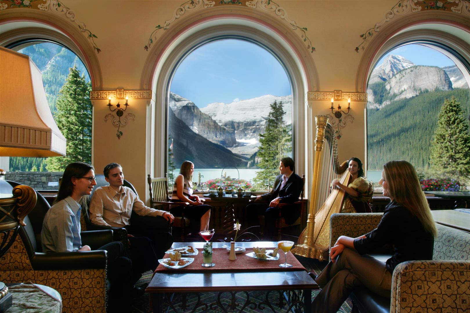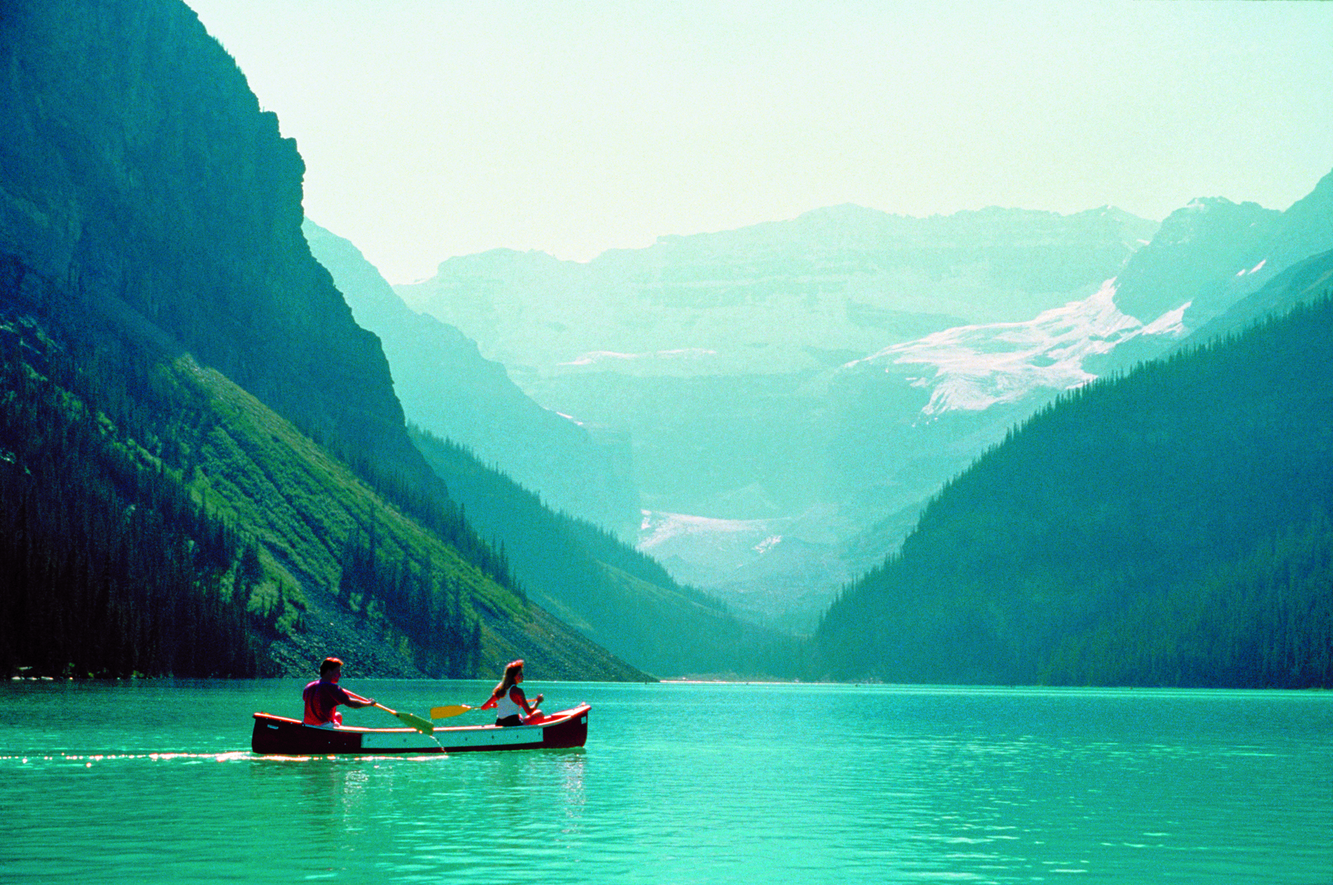It’s an hour northwest up Highway 1 from Banff to Lake Louise; Highway 1A along the Bow River offers better scenery, more wildlife, and doesn’t take much longer. The standard view room, several floors up in the Fairmont Chateau Lake Louise, is small, with a Swiss-chalet feel. But a walk to the west-facing window is literally breathtaking, as your eyes drink in the view: Red Flanders poppies fill the foreground, behind which lies a glacial lake of an impossible light sea-green color—Lake Louise. Tree-clad hillsides rise steeply on either side, and behind the lake the massive Victoria Glacier crowns the scene with layers of snow and ice to 11,365 feet. All of this is perfectly reflected in the still waters.