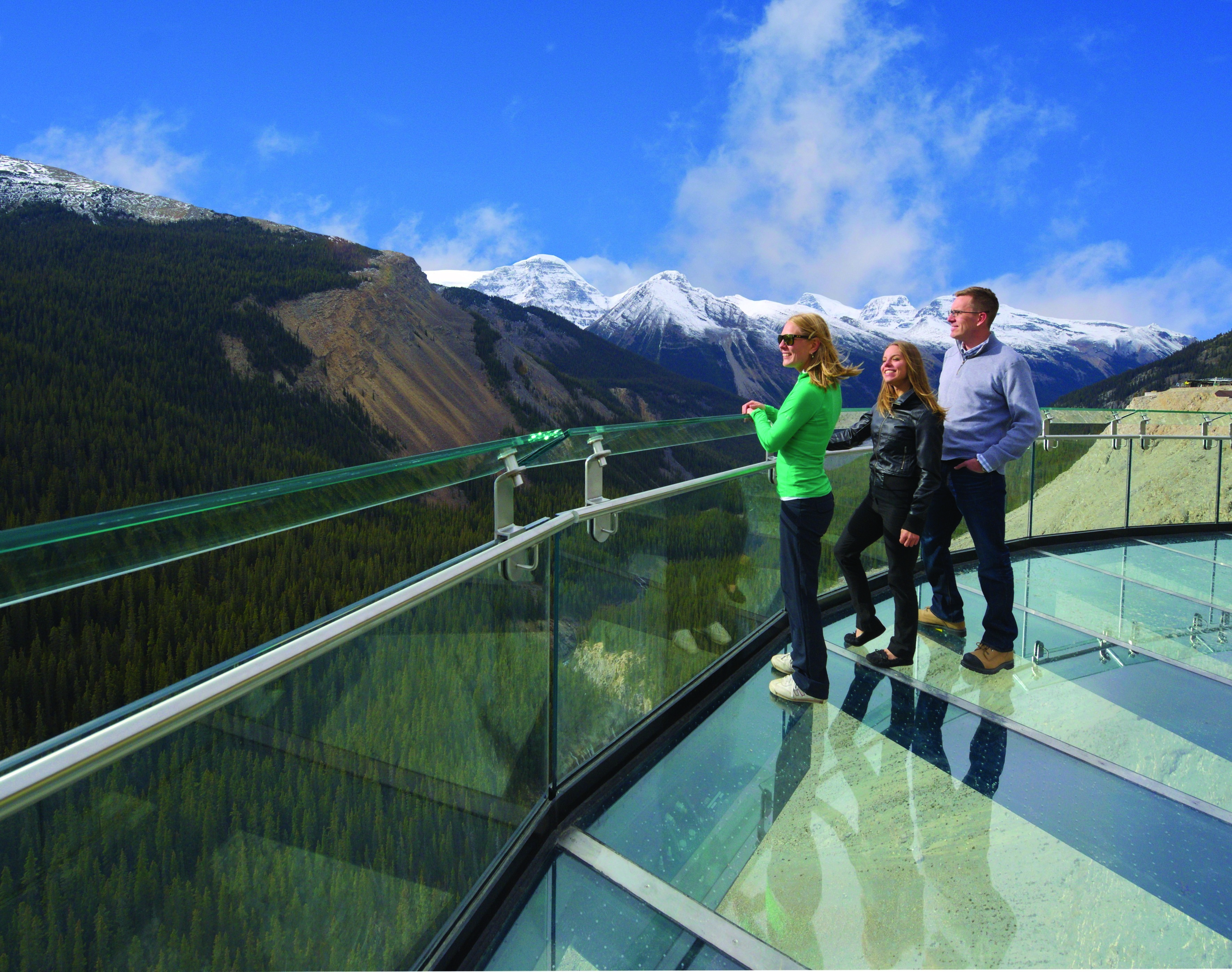Athabasca Glacier: Your next stop is Athabasca Glacier, where you can walk to the retreating glacier’s toe. Signs with dates on them show how it has receded over the past decades (it recedes about 16 feet per year now). The Columbia Icefield Center lies across the highway from the glacier. Grab a bite and book a tour of the glacier via Ice Explorer—you’ll get right out onto the glacier via a special snow bus. Athabasca Glacier is another of the six principal “toes” of the massive Columbia Icefield, 325 sq km and over 900 feet thick, whose meltwaters flow into the Arctic, Pacific, and Atlantic Oceans. The Icefield sits above the glacier, out of view, but you can see it on a flightseeing tour (see "Canadian Rockies: Jasper and flightseeing the Rockies"). As you stand on the glacier, you’ll hear the roar of melting water rushing downhill all around and beneath you. Bring an empty bottle to fill with pure glacial water, deposited here perhaps 200 years ago. Another tour that departs from the Columbia Icefield Center is the Glacier Skywalk, modeled after the Grand Canyon Skywalk in Arizona. It’s a glass-bottomed, U-shaped walkway that stretches out over a cliff. Walk out and look down—glass is all that separates you from a 918-foot drop to the floor of the Sunwapta Valley below. (Consider booking one or both of these tours for the day you drive back, so you have time for the Parker Ridge hike and other stops on your way up.)