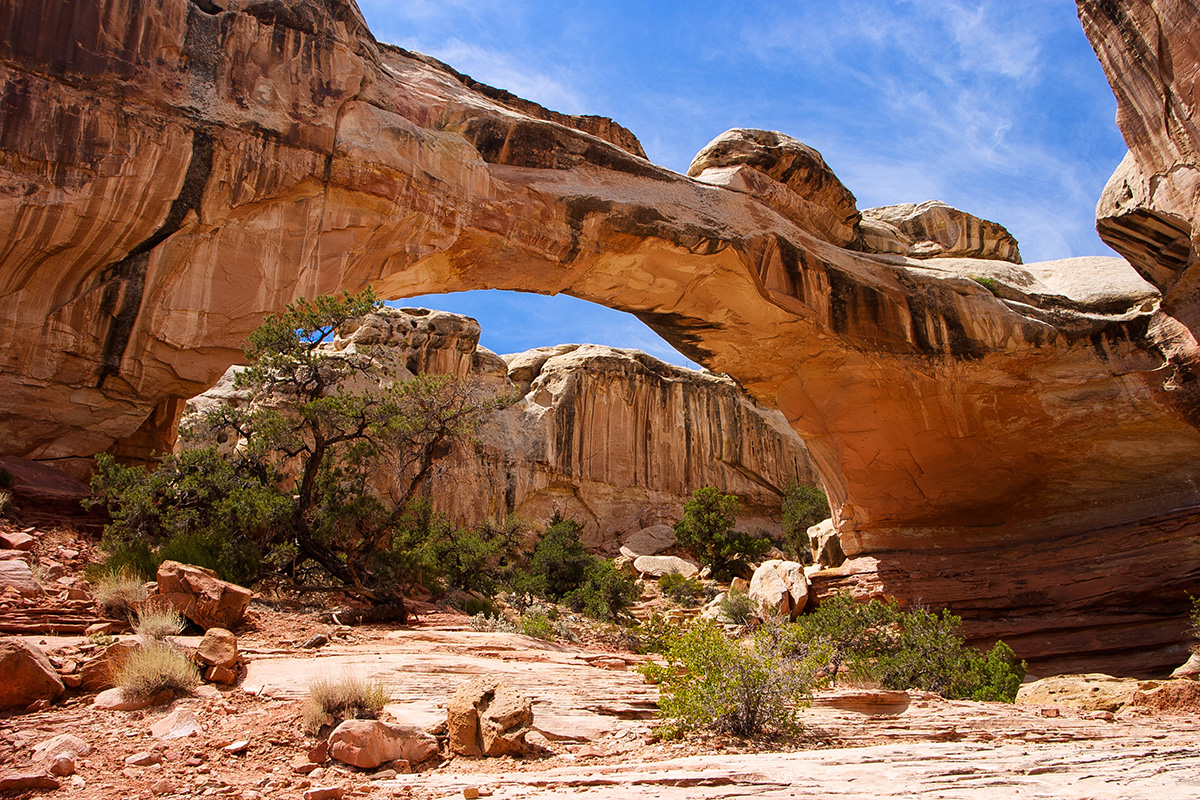Natural Bridges National Monument: One of our earliest national monuments, Natural Bridges was designated by President Theodore Roosevelt in 1908. Three large, named natural bridges are accessible via short hikes. A natural bridge is formed when water from a stream undercuts a rock wall. This monument was the first International Dark Sky Park certified by the International Dark-Sky Association. See the Milky Way rise over Owachomo Bridge, just as the Ancestral Puebloans who lived here did 800 years ago.