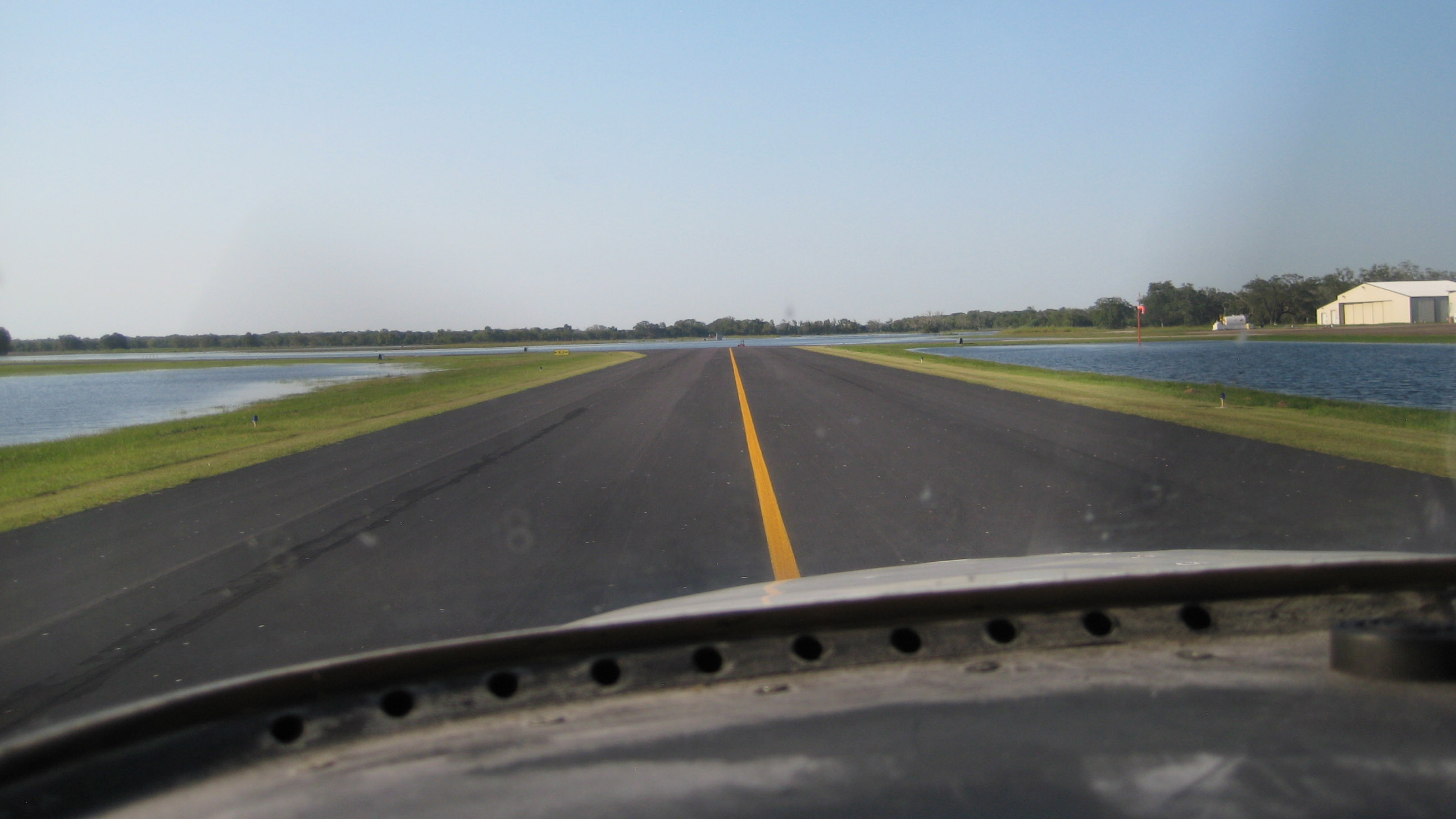 With the field in sight, I switched to the CTAF about 10 miles out. By 5 miles out I got a little nervous because I could see the runway was entirely surrounded by water; I couldn’t quite make out the status of the taxiways. The winds favored Runway 35, so if I couldn’t reach anyone on the radio I would do a low approach from north to south to survey the field before landing. The airport was attended, and they confirmed that all taxiways and ramps were open. It was a very surreal feeling to land on this island of concrete elevated above the water. I later found out that the only road leading to the airport was still under 16 inches of water, so only larger vehicles were even able to drive there.