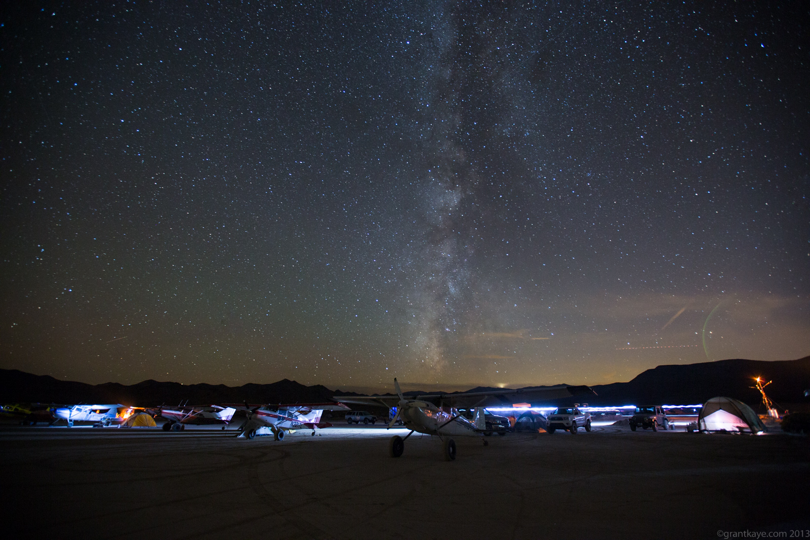 Back at Dead Cow Lakebed, there’s an event you won’t want to miss: STOL drag races. See the photo captions for how these work; they’re a blast! Other events might include a watermelon drop. At night, fireworks and a giant bonfire light up the sky. Many pilots donate cash or via PayPal to Quinn, as the fly-in costs him thousands to put on, with the firewood/works, porta-potties, prizes, food, beer, T-shirts, and other expenses. To get a taste of the fun and energy, go to YouTube and type in High Sierra Fly-In. Better yet, fly out yourself and be part of the fun!