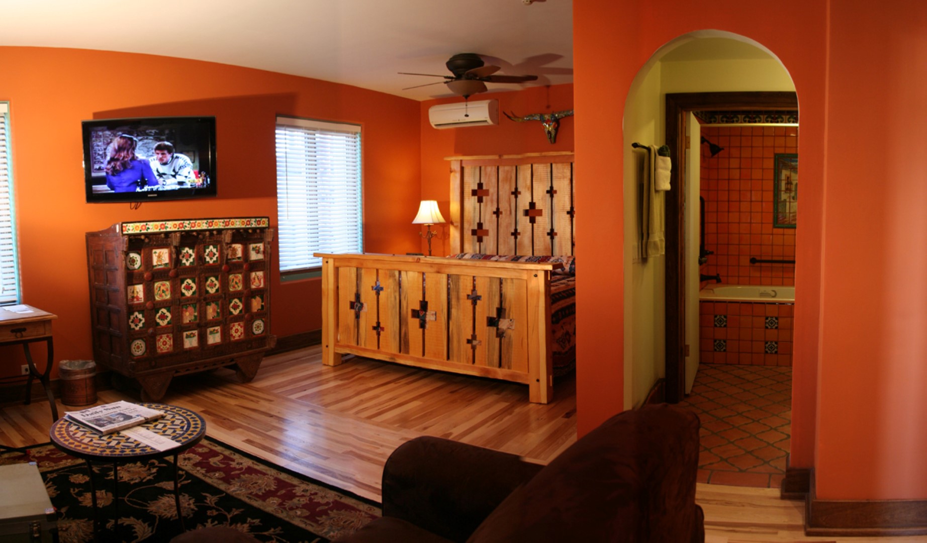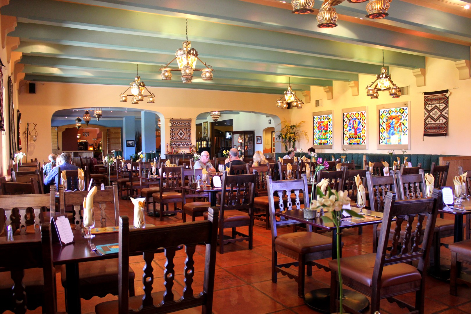 La Posada’s new ownership also ignited a burgeoning art scene that’s helping transform Winslow into a hip, edgy cultural center. Iconic L.A. artist Ed Ruscha is a regular visitor who cites Winslow as one of his top 10 American towns. Somehow during all the renovation work at La Posada, Dan Lutzick, a sculptor and partner in the hotel, found time to buy and transform the old Babbitt Brothers department store into the Snowdrift Art Space. Dan lives there with his wife Ann-Mary, director of the Old Trails Museum, and their dogs. Many of Lutzick’s sculptures are made of layers of cut-out wood and remind me of kachinas, with a Day-of-the-Dead twist to them; free guided tours are by appointment. The Old Trails Museum is filled with artifacts and fossils from the local area. The Winslow Arizona Chamber of Commerce occupies the former Lorenzo Hubbell Trading Post. It’s almost like a museum, with all the historic elements left intact.