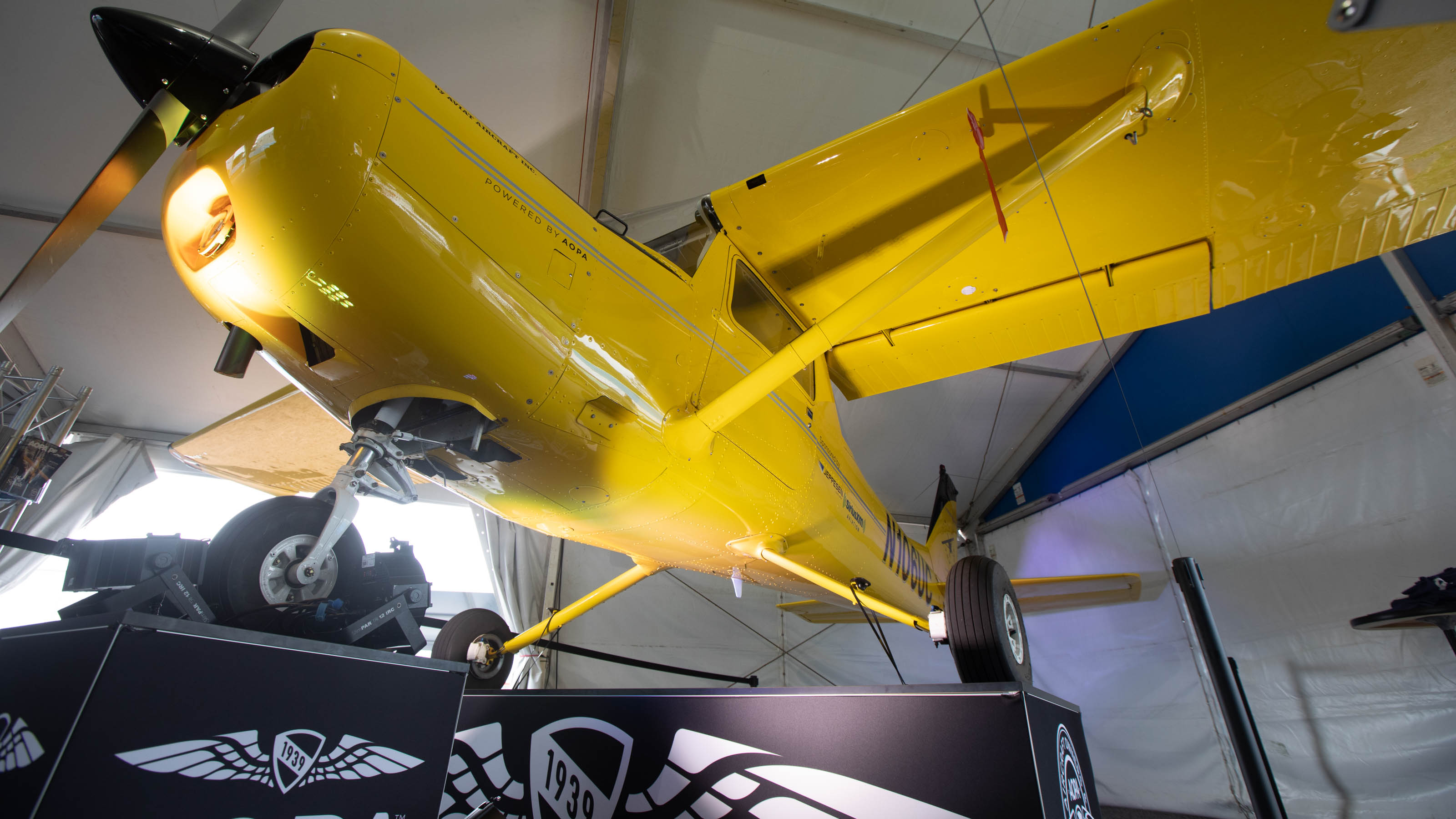 A firefighter inquired about the weight of the aircraft (about 1,000 pounds) in the eye-catching display, possibly a first temporary pool placement in the 45-year history of a show once known as “spring break for pilots” that has evolved into a fundraising powerhouse fueling aviation’s next generation.
