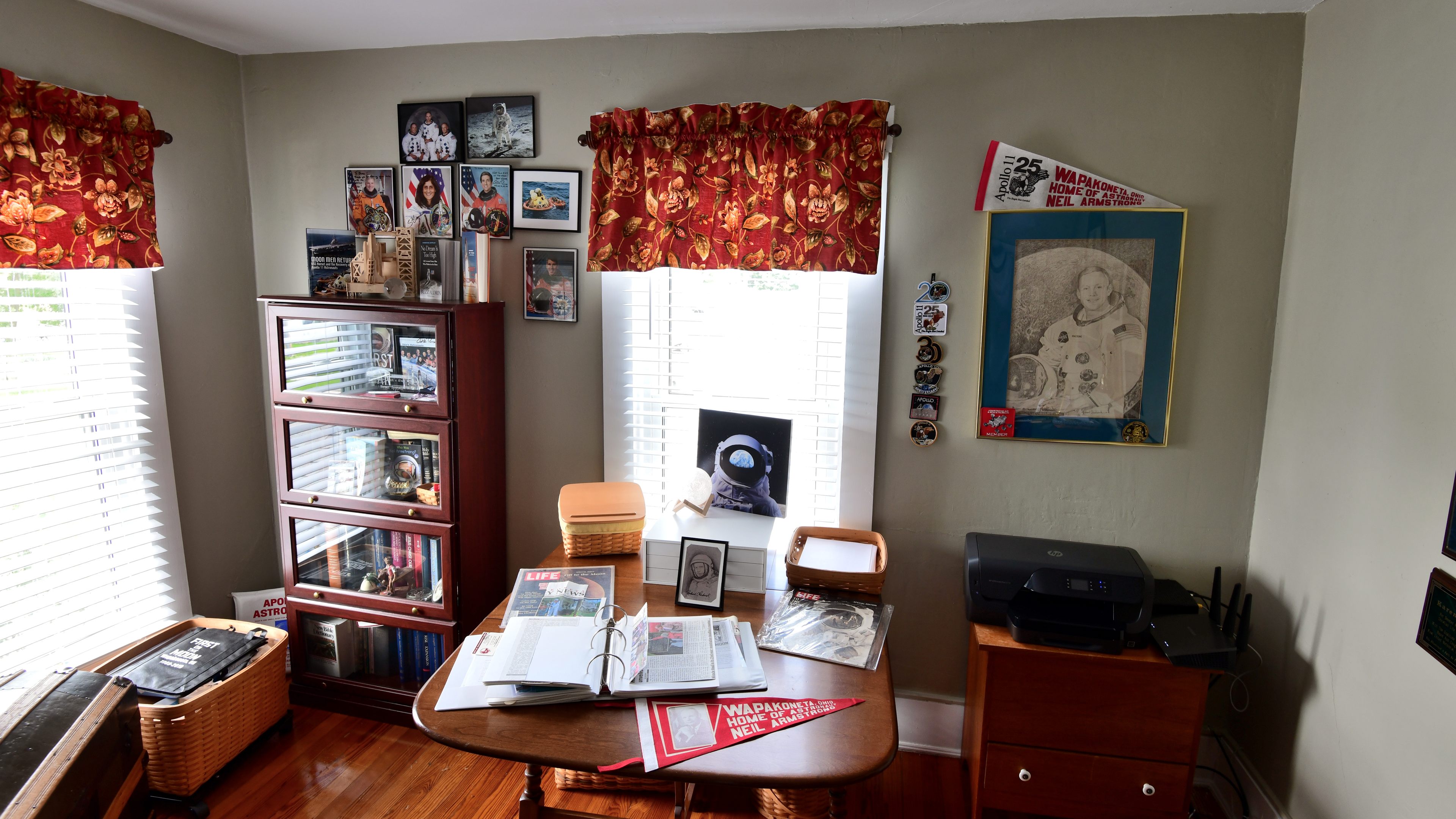 “It’s been a pleasure to have this house,” Tullis said. “Not just because Neil lived here, but to help preserve history.” Armstrong and his brother shared the bedroom at the top of the stairs; she uses it as an office and displays space and Armstrong memorabilia. “My ultimate goal is to preserve it much as it was like when they were here.”