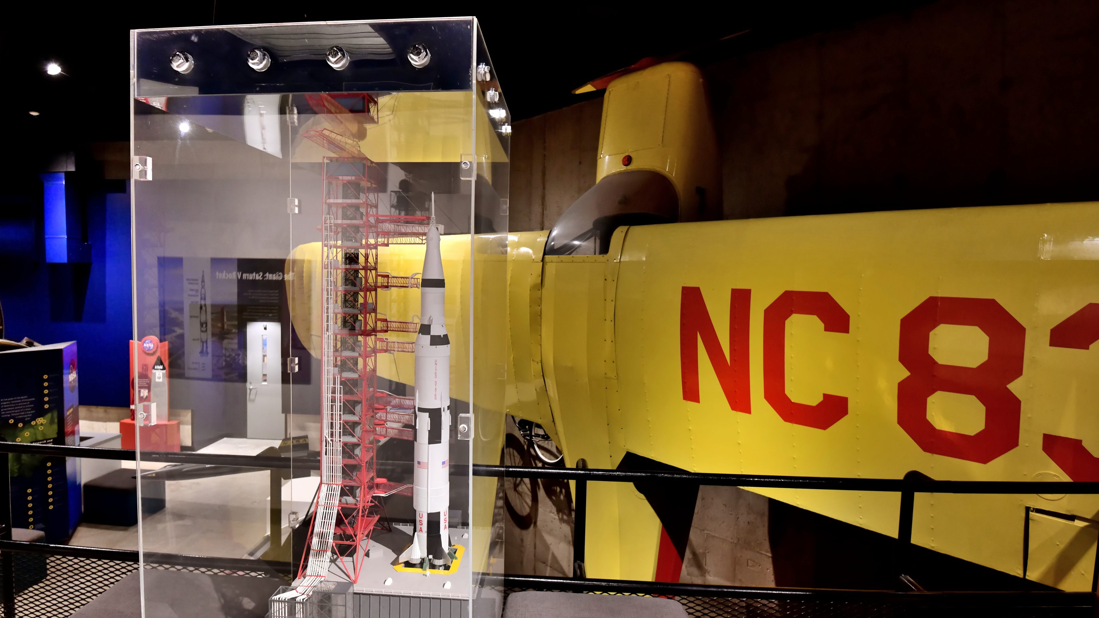 Armstrong learned to fly in an Aeronca Champ at Port Koneta Airport, which was located north of Wapakoneta, but the facility closed in the 1960s. The aircraft is preserved in the Armstrong Air and Space Museum—displayed vertically, along a wall, because there wasn’t space to orient it traditionally. Today Neil Armstrong Airport, about 10 miles southwest of Wapakoneta, is named for him but is not where Armstrong learned to fly.