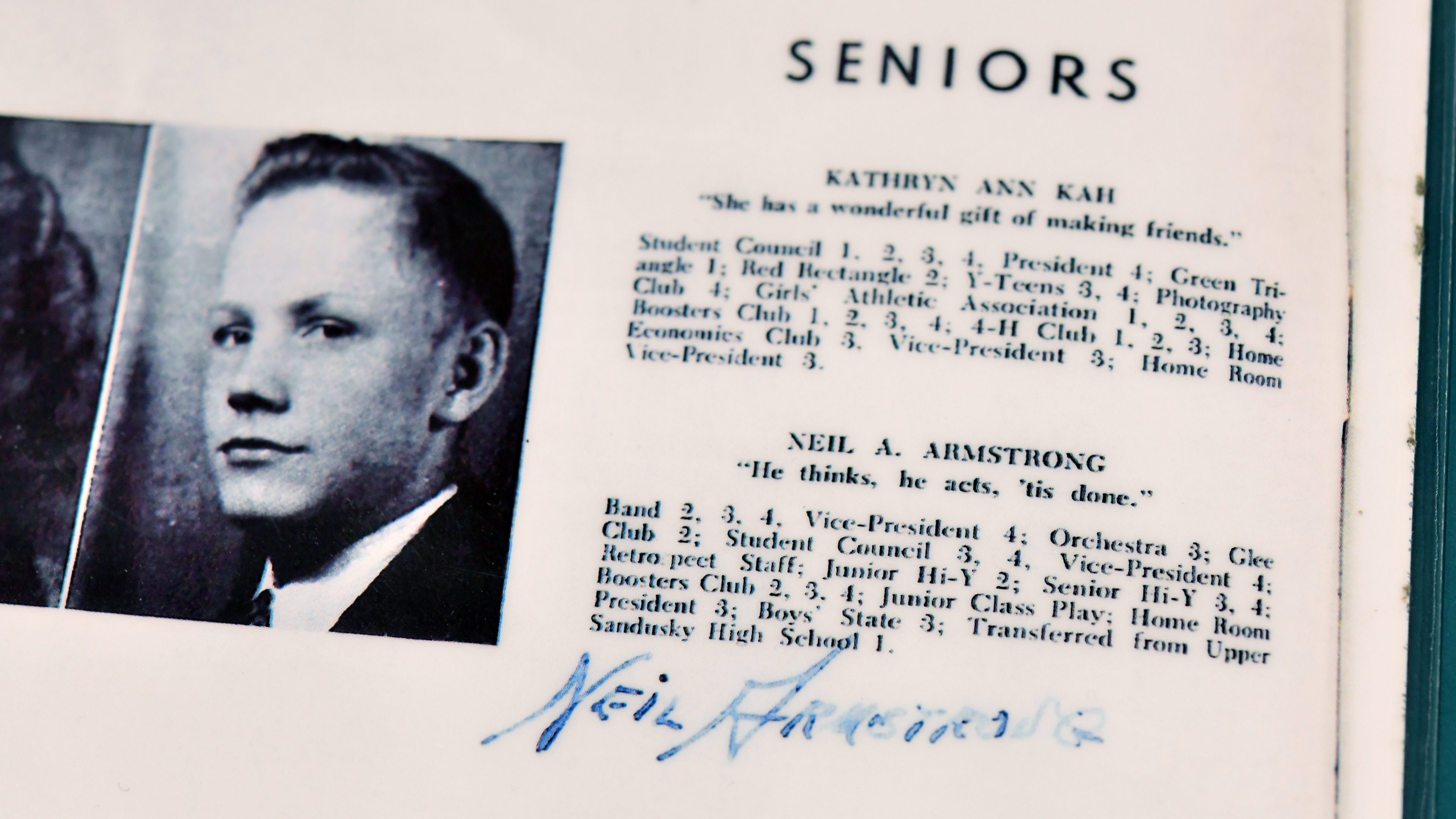 A teacher she worked with told her that Armstrong had lived there. “I said, ‘Yeah, sure, Barb.’” But the coworker told her, “Neil and I went to the prom, but we had to walk. He could fly an airplane but he couldn’t drive a car.”
