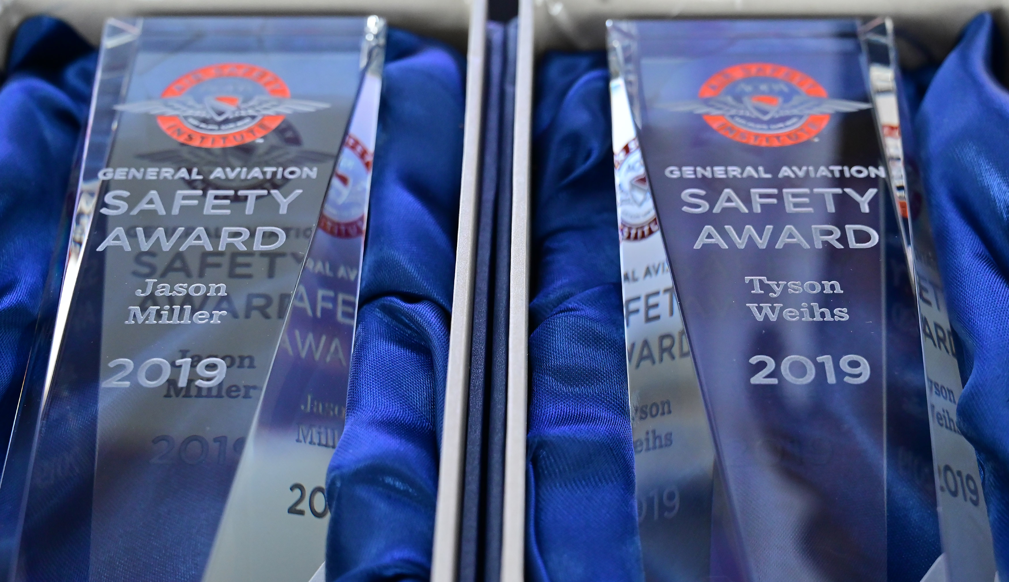 AOPA Air Safety Institute Executive Director Richard McSpadden, a former commander and flight leader of the U.S. Air Force Thunderbirds, presented the second annual GA Safety Award to ForeFlight founders Tyson Weihs and Jason Miller for delivering “exceptional performance in safety to benefit the entire general aviation industry.”