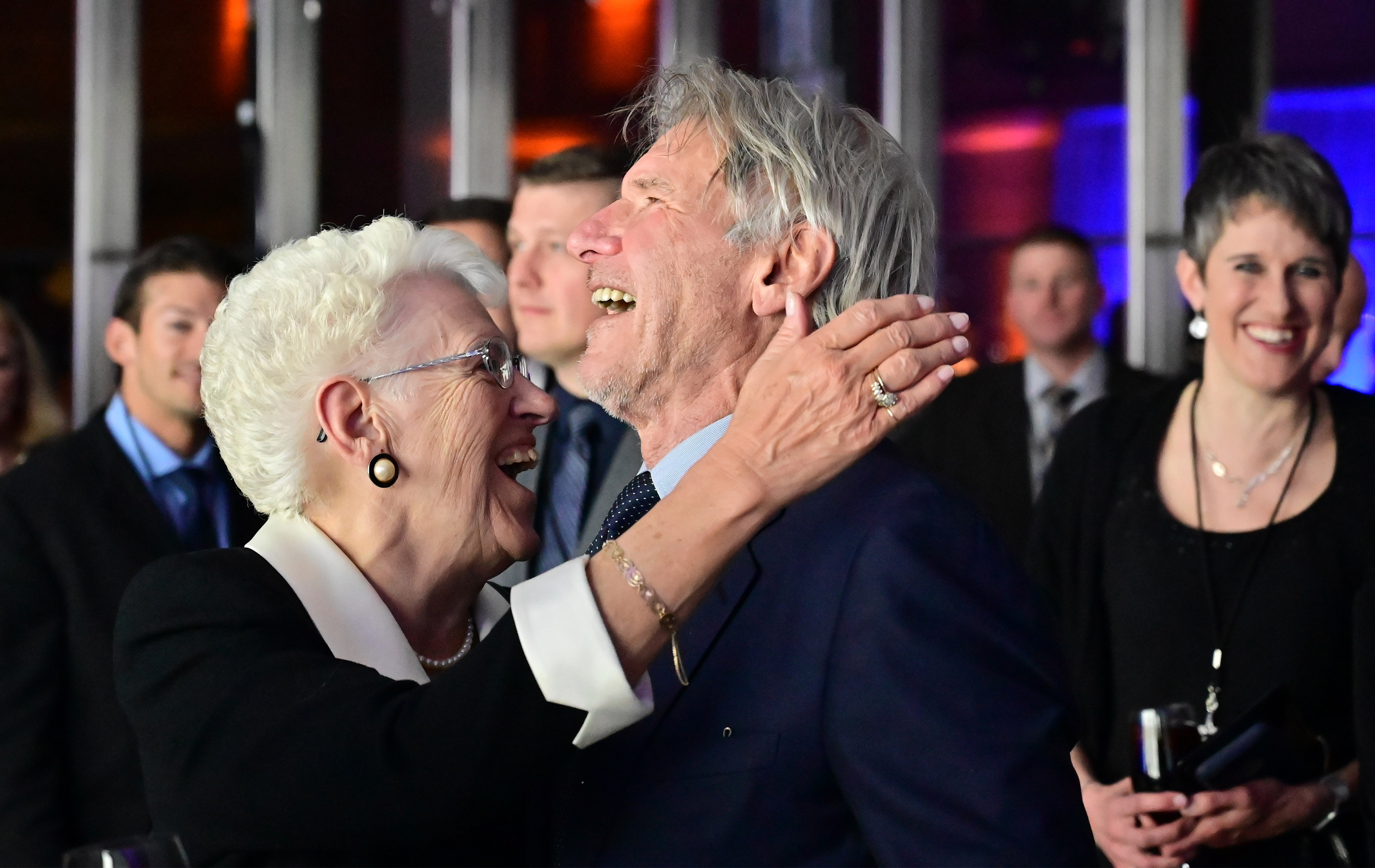 Cheers and applause greeted aviation legend Clay Lacy as he was presented the 2019 Hoover Trophy by actor and general aviation advocate Harrison Ford on March 20.