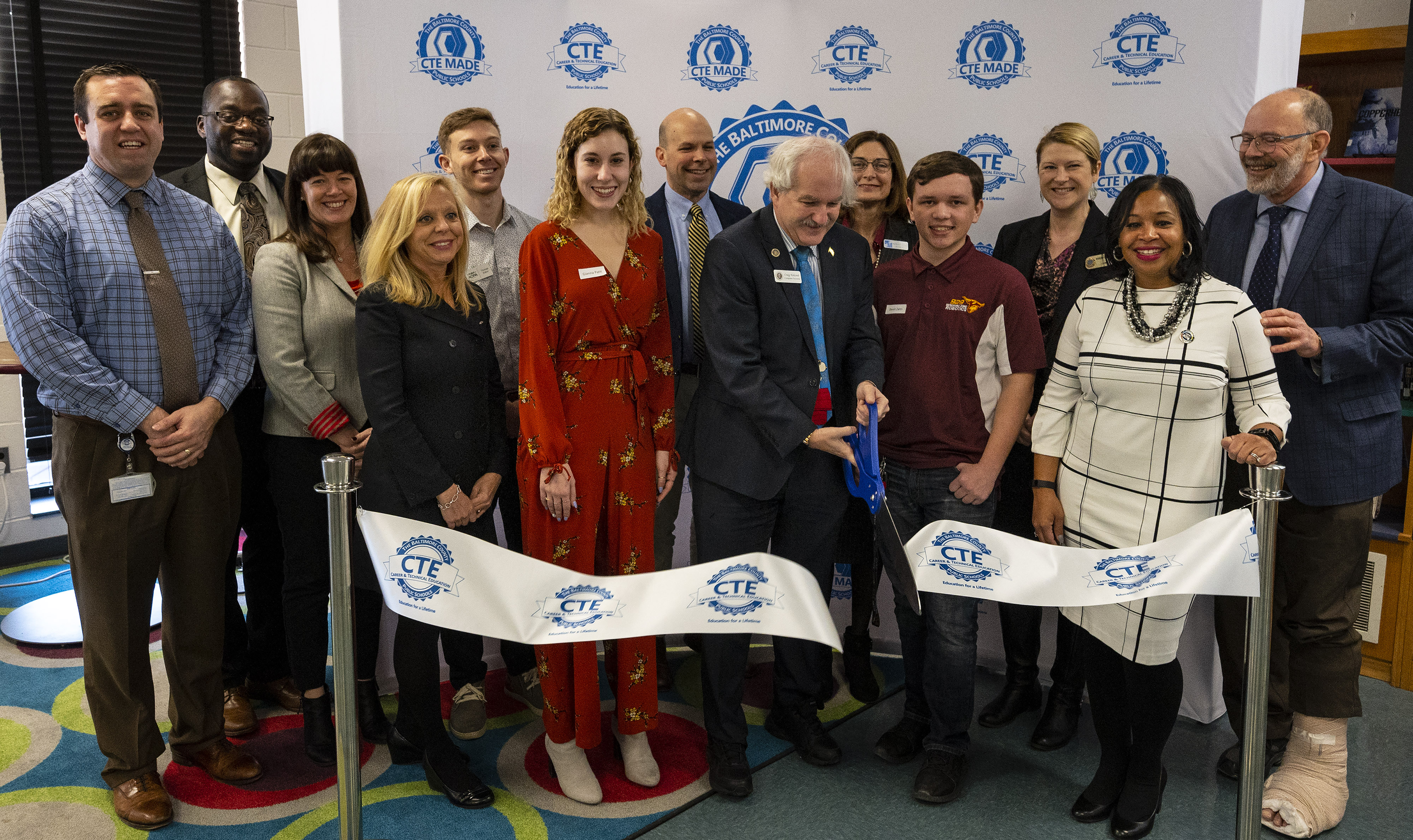 Baltimore County Public Schools Technology Education Supervisor Robin M. Bowden addressed dozens of school district officials, teachers, and aviation industry professionals who gathered for an official opening ceremony February 21 in Parkton, Maryland.
