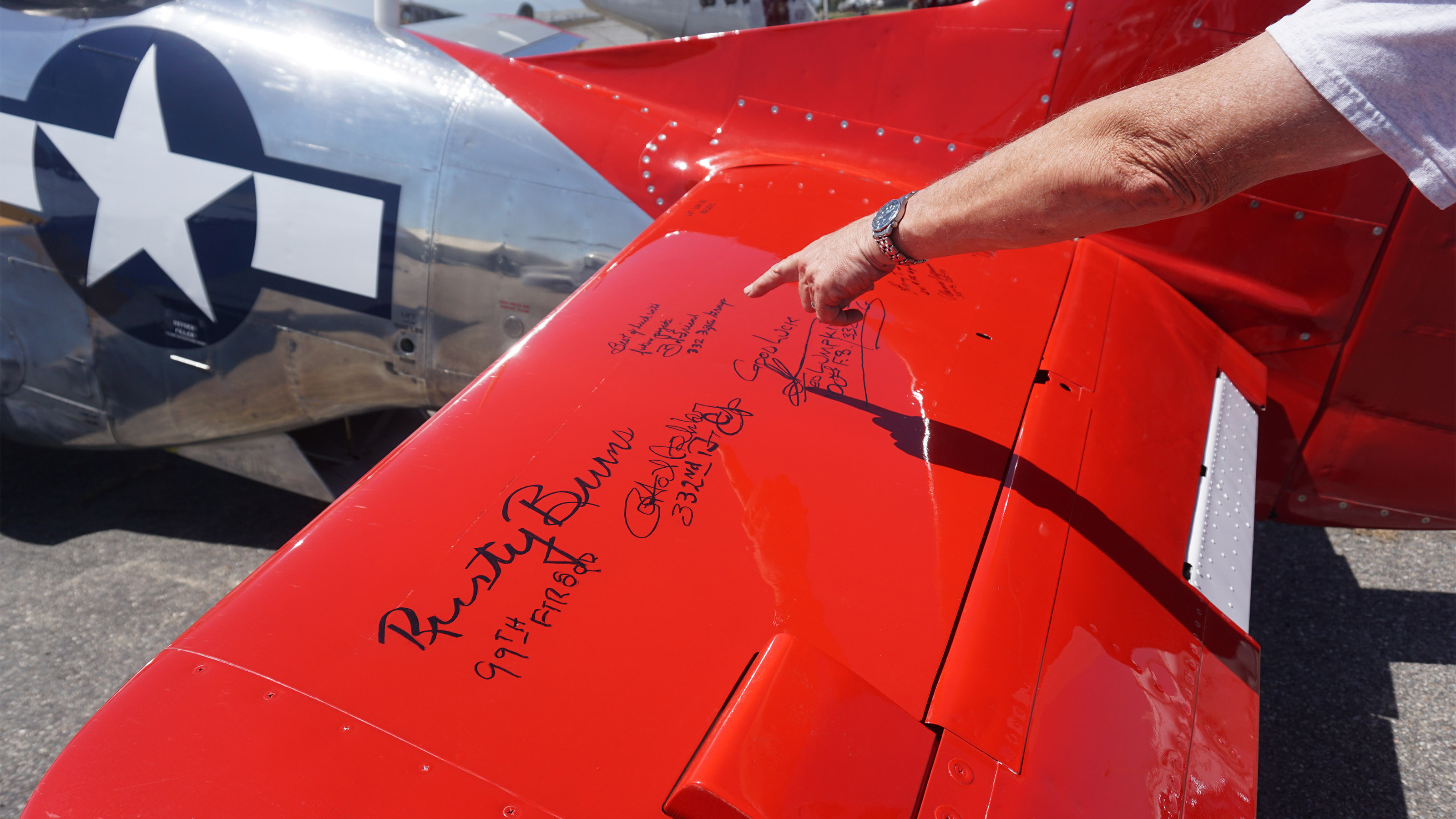 Also participating in the flyover was the Palm Springs Air Museum’s North American P–51 Mustang Bunny, piloted by Tom Nightingale, and modeled after Tuskegee Airman Robert Friend’s airplane. Nightingale and Friend met at the christening ceremony for the restored airplane in 2015 and developed a kinship through their shared love of aviation. Friend, who flew 142 missions during World War II and had a 28-year career in the military, died in 2019 at the age of 99. The opportunity to salute his memory and other veterans, said Nightingale, was one of the key motivators to why the museum’s P–51 joined the flyover.