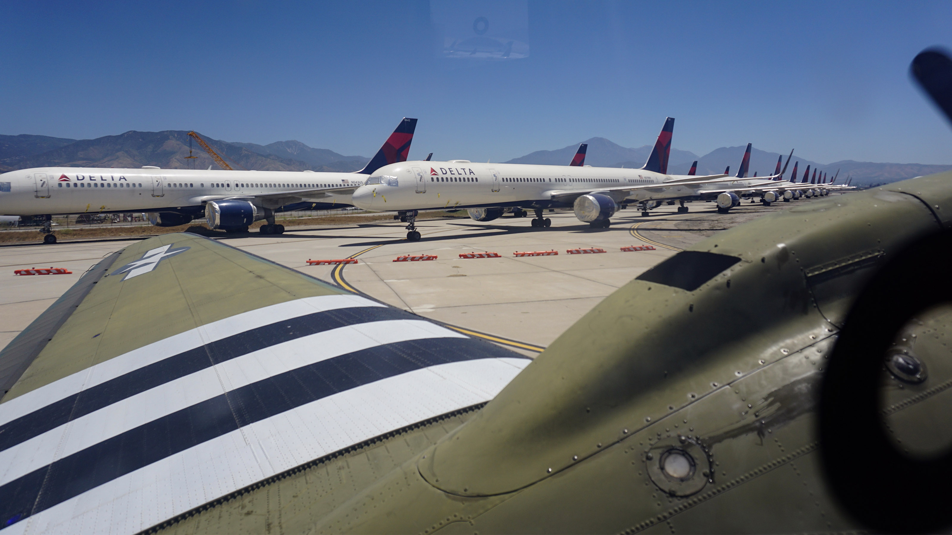 The sight of World War II-era propeller airplanes taxiing out through the crackling desert heat of San Bernardino was unique. What made it even more memorable was that they taxied by dozens of grounded airliners, engines plugged, waiting for the other side of the coronavirus pandemic.