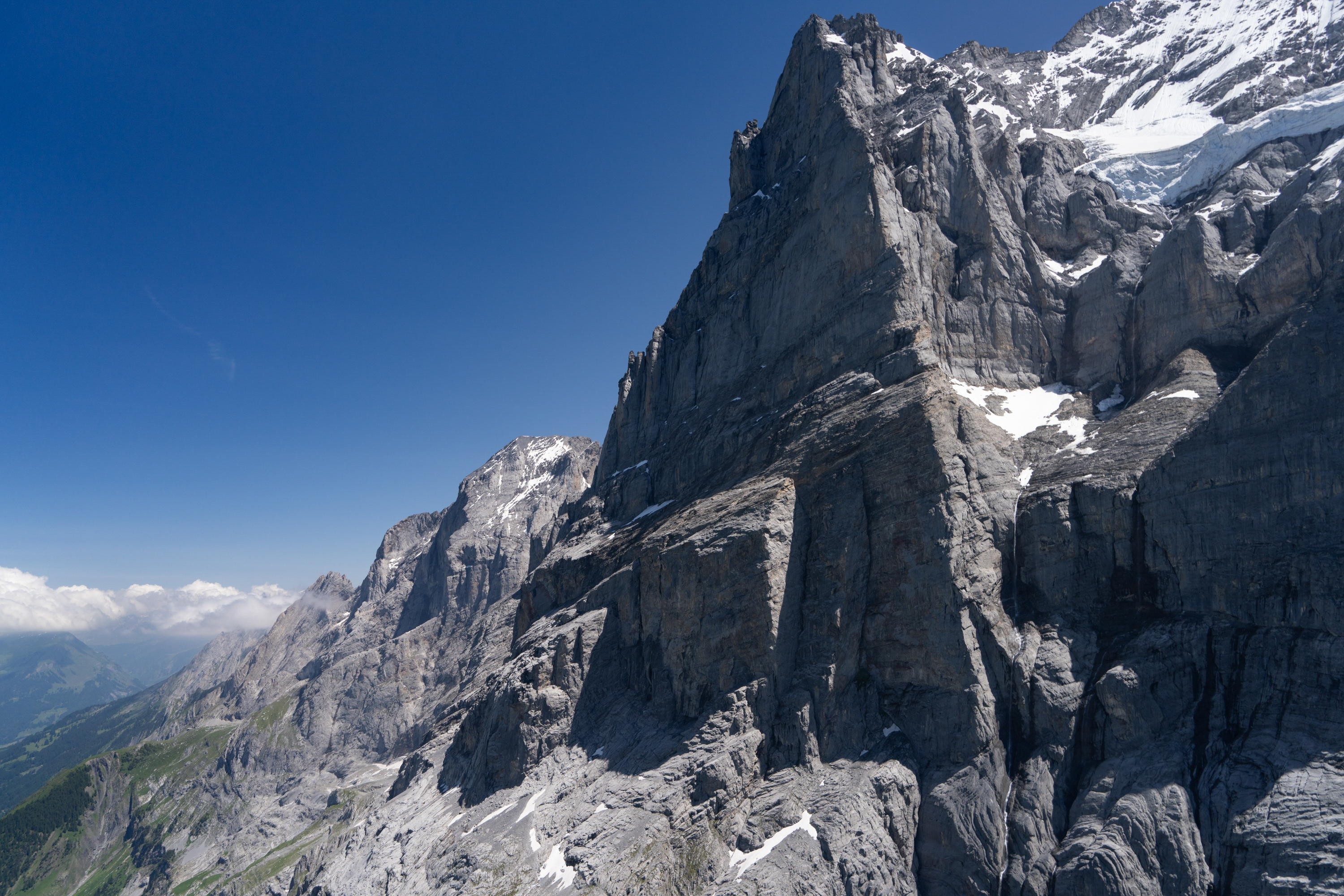 After Obers Ischmeer, I was able to literally see the Eiger mountain in new light. Coming out of the valley, the north slope was illuminated in early afternoon sunlight, enhanced by proximity to the summer solstice. Being nearly vertical, the Eiger is usually dark , except at sunset. That angle would offset progressively along the sharp north face of the Bernese Alps as I continued to the east.