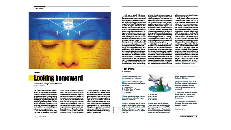 Ukrainian Julia Levitina’s “Musings: Looking Homeward” (November 2022 AOPA Pilot) resonated with me, as a first-generation American of both a Ukrainian mother and a Crimean-Tatar father. Prior to the current Russian invasion, both of their homelands were invaded by the Nazis in 1941. My then-17-year-old mother, along with 2 million other Ukrainians, was taken to the Third Reich as a forced laborer; basic freedoms lost, under a brutal regime.