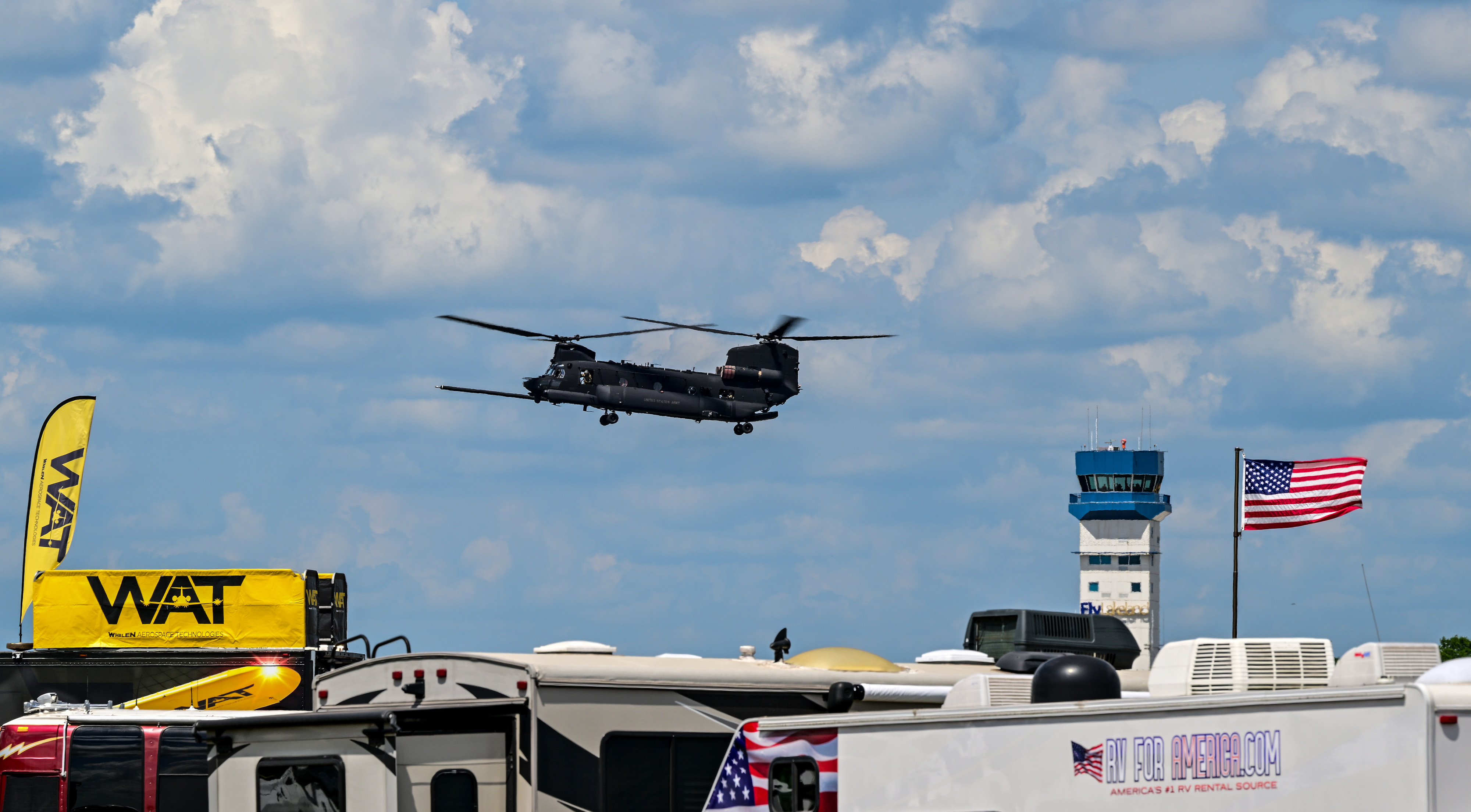 Early arrivals staked out prime camping and viewing spots for the Sun ’n Fun Aerospace Expo in Lakeland, Florida.
