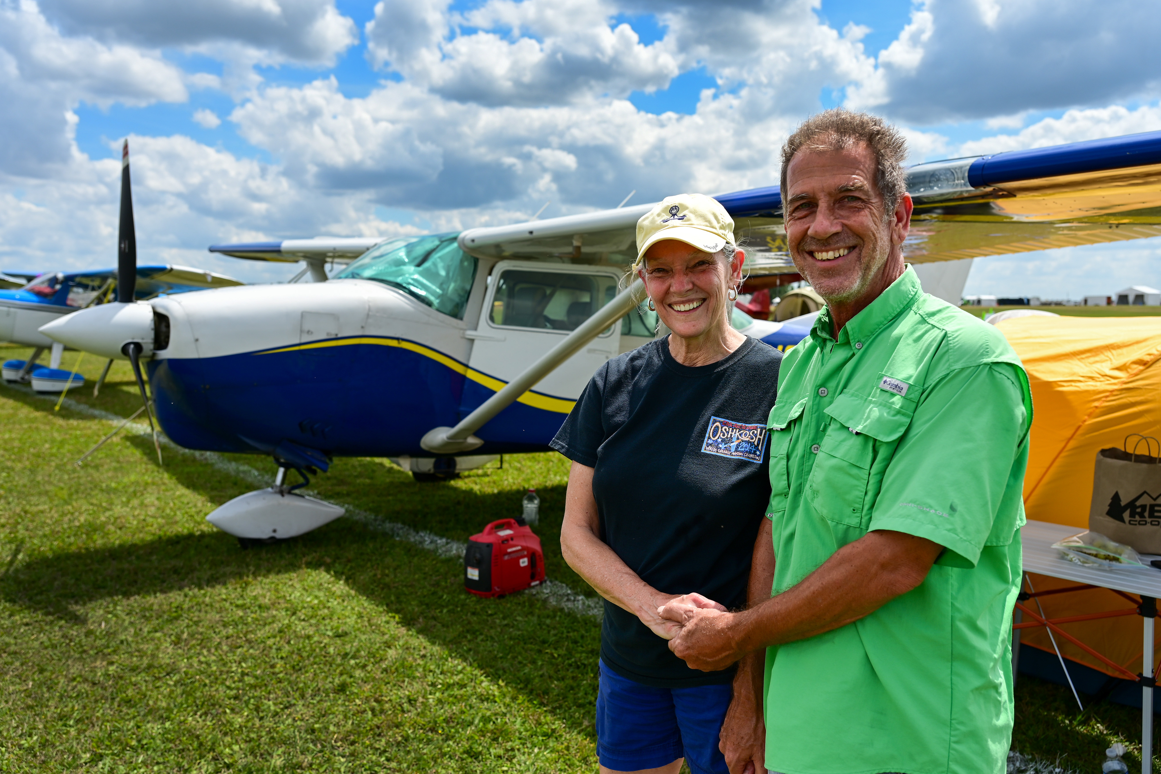 Jeff and Nancy Kling of Houston set up camp beside their Cessna 205 on March 26, a relatively quiet day for arrivals. The action heated up on March 27 with attendees rolling in. Jim Waldron, AOPA Airport Support Network volunteer for St. Simons Island Airport in Georgia, watched the hustle and bustle beside his Cessna 120.