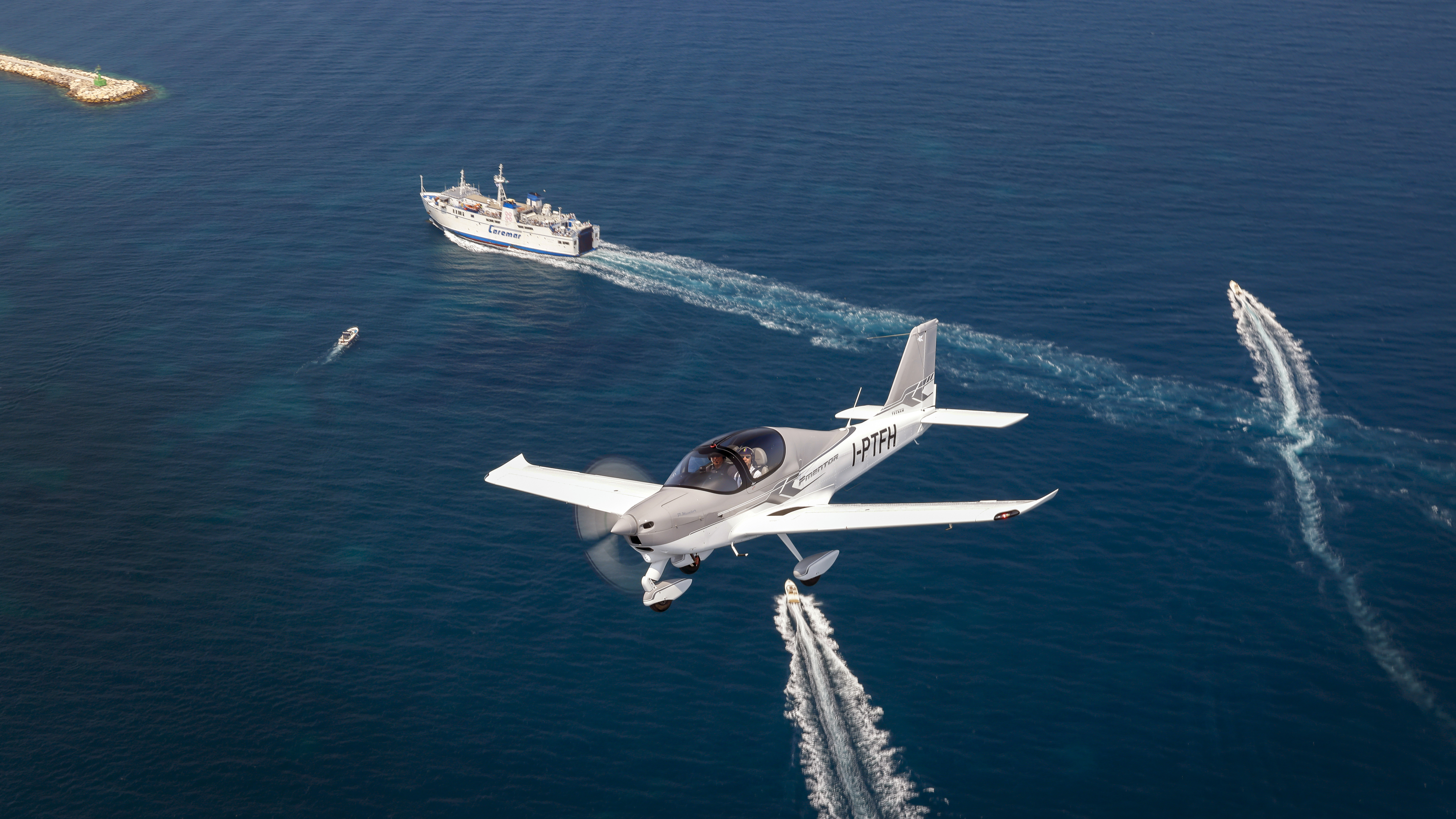 The Mediterranean Sea is placid, and the evening air is still as our two airplanes start a series of lazy orbits about 800 feet over the water and the islands with their craggy hills serving as a backdrop for this memorable photo flight.