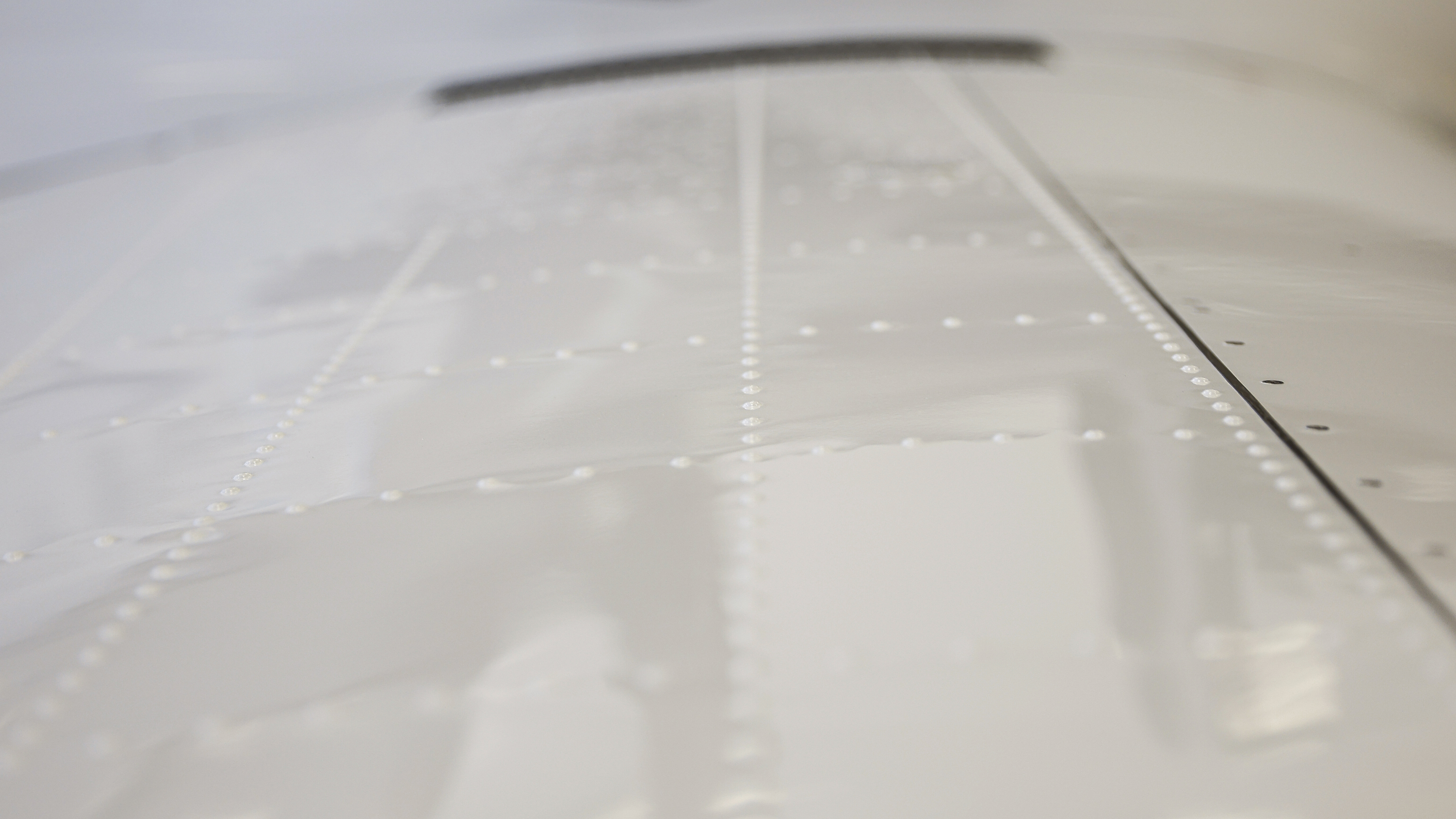 Up close, the metal airplane has some notable brawn. The metal wings with carbon-fiber leading edges are held together by sturdy button rivets with protruding round heads instead of more aerodynamic and labor-intensive flush rivets. The fuselage and control surfaces employ pull rivets that simplify construction. The thick nose gear has its own shock absorber as well as a 5.00 by 5 tire just like the main landing gear.