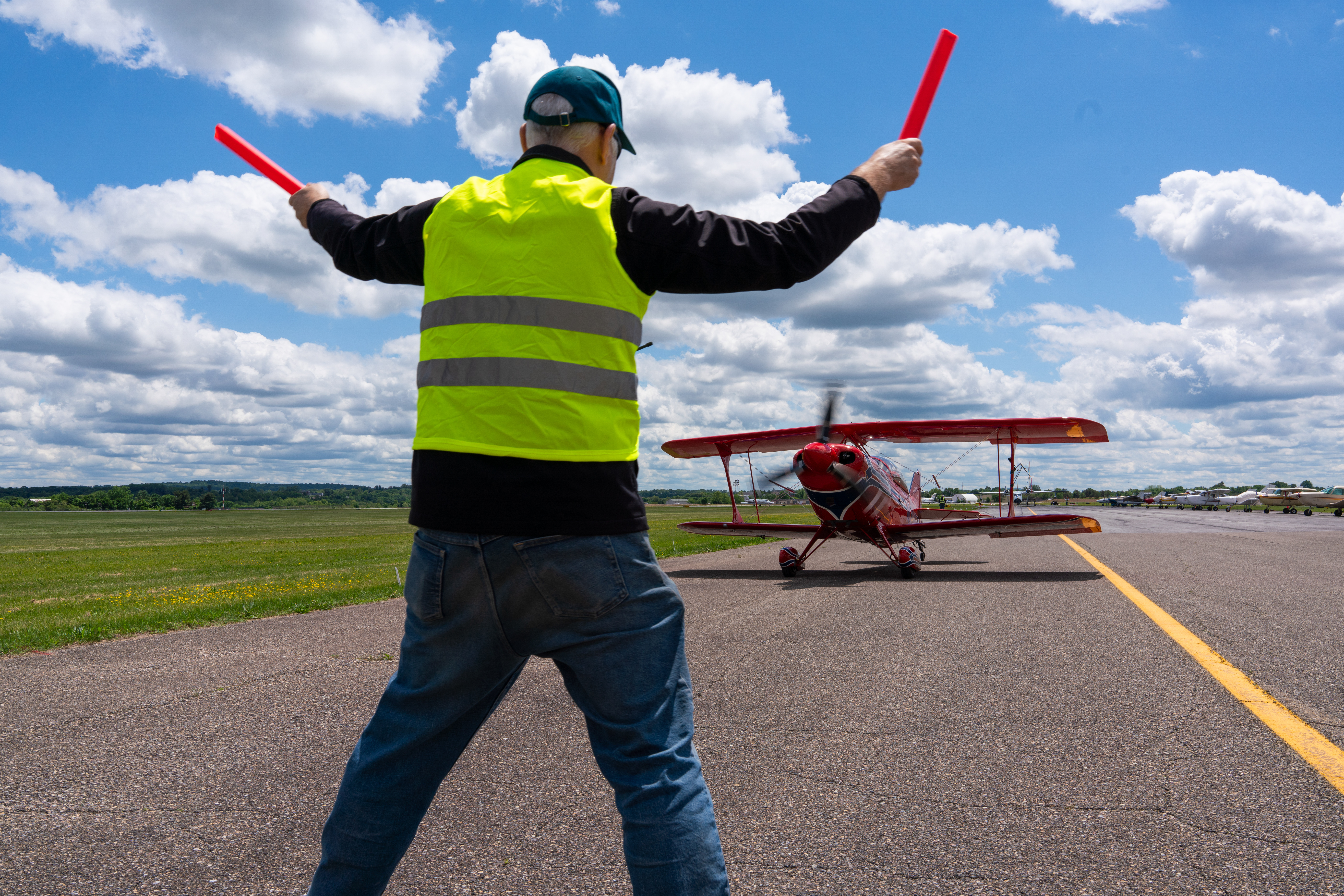 When Saturday dawned to clear skies and subdued breezes, everyone involved in this massive undertaking drew a huge sigh of relief. An early morning briefing was led by Mike Ginter, who was the air boss of the overall operation (and AOPA’s vice president of airports and state advocacy), and veteran airshow air boss Wayne Boggs, who would lead operations in the tower at Frederick Municipal Airport. They set the tone: excited anticipation with a strong emphasis on safety.