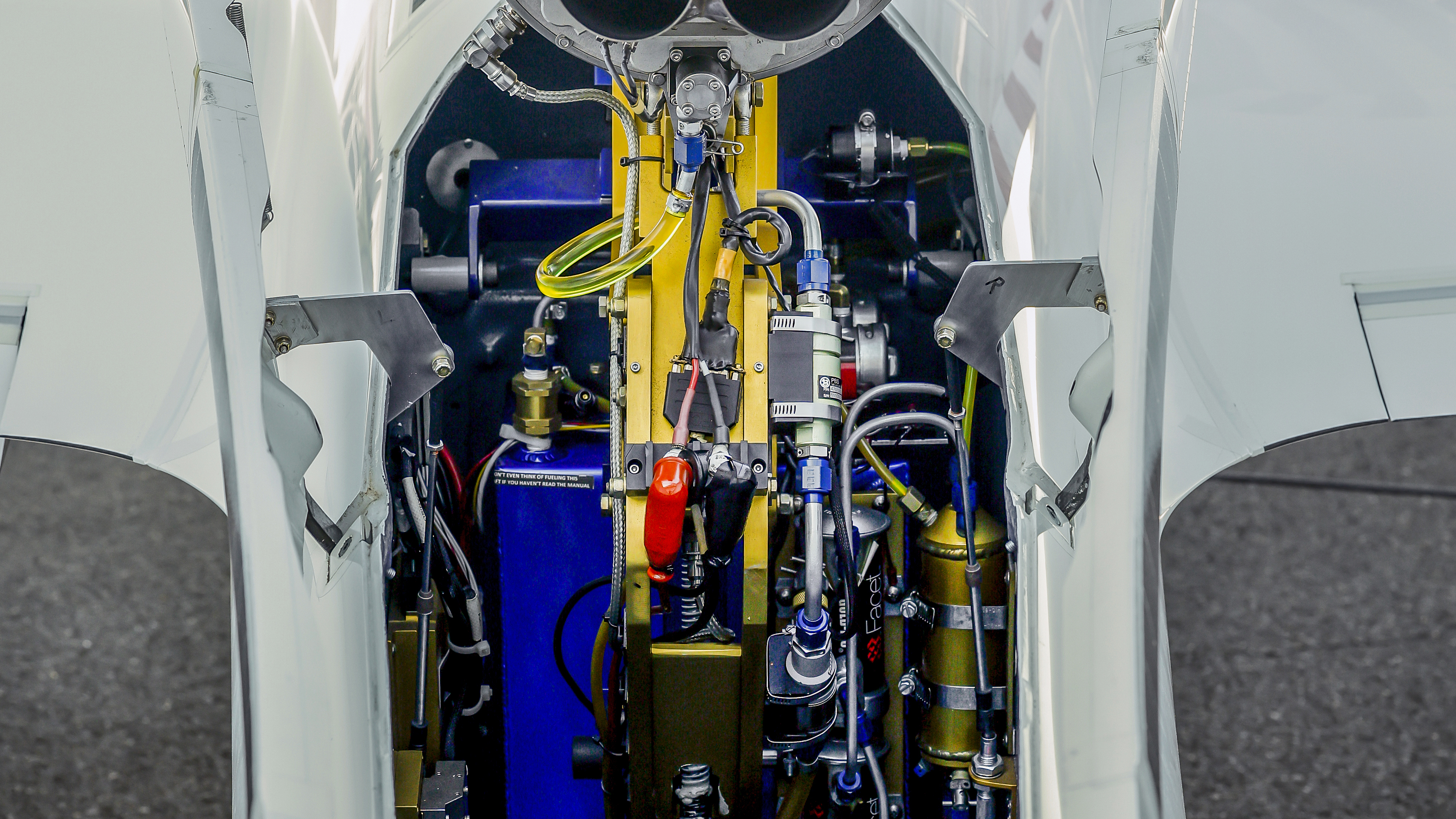 He straps into the glider’s reclined seat at Manassas, starts its PBS TJ-100 jet engine, and crab-walks along the taxiways with the glider’s main wheel at one edge of the pavement and a much smaller wheel that droops below a wing rolling down the far edge. The glider tilts hard over toward the low-wing side throughout the taxi, and the wing-mounted wheel transmits every crack in the pavement. The Czech-built PBS engine consumes about 14 gallons of jet fuel per hour at idle on the ground at sea level, and the glider only holds 23 gallons, so Stewart tries to get airborne as quickly as possible.