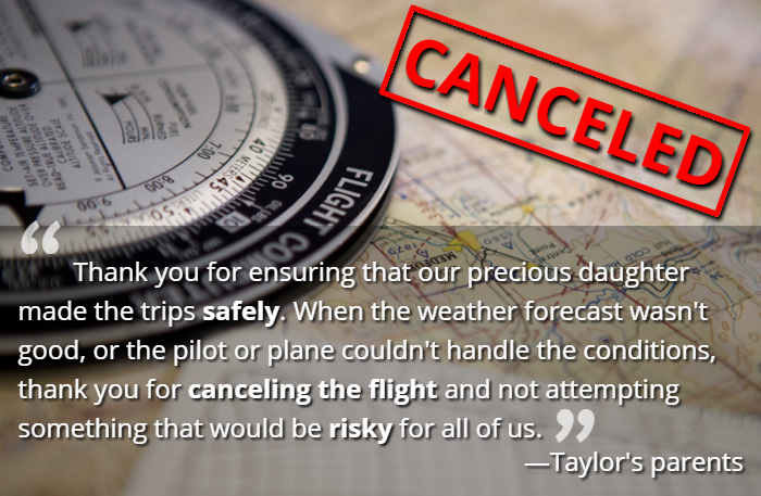 Note: Check the volunteer pilot organization’s minimums as they may be more restrictive than the ones you’ve set for a personal flight.